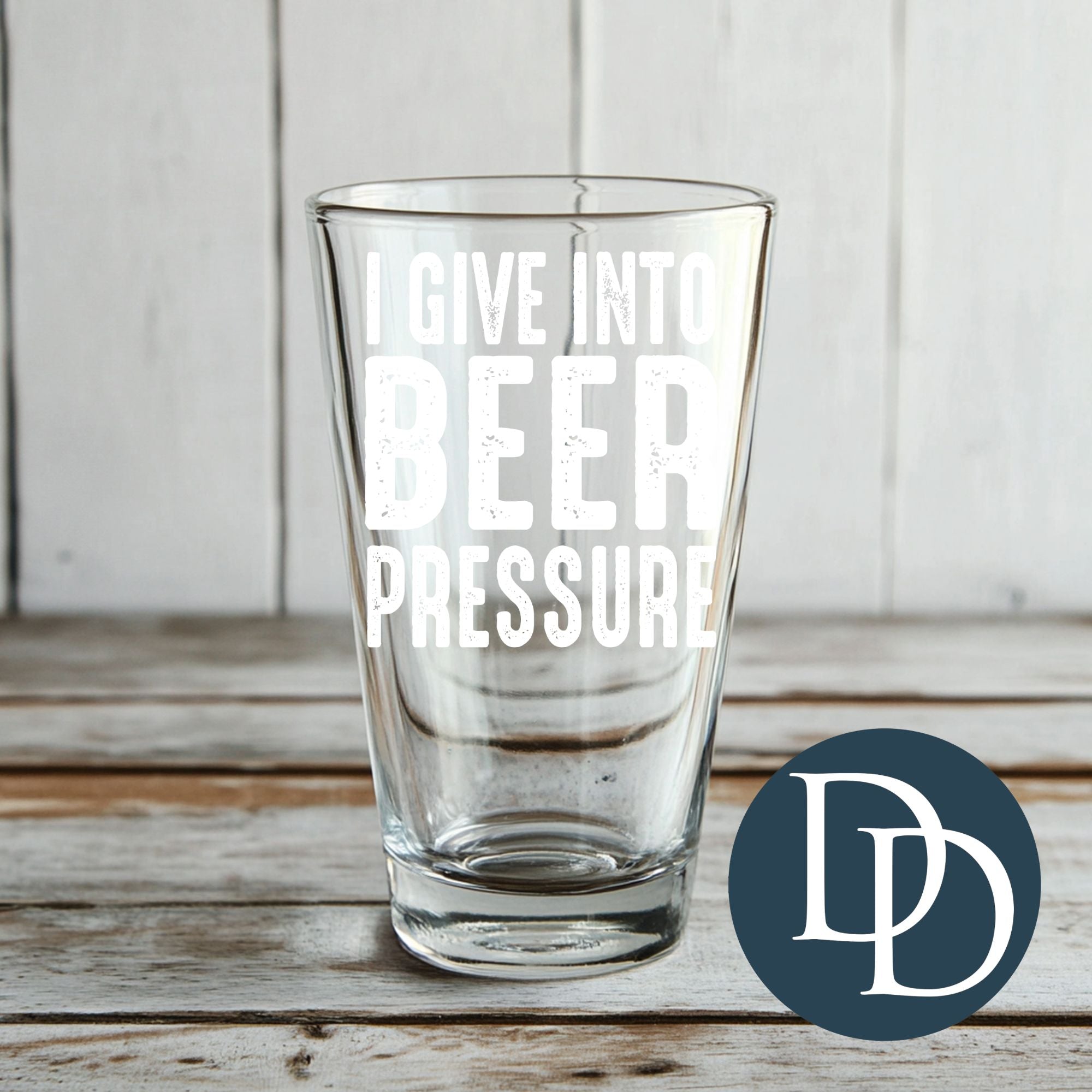 I Give Into Beer Pressure *UV DTF Beer Glass Decal*