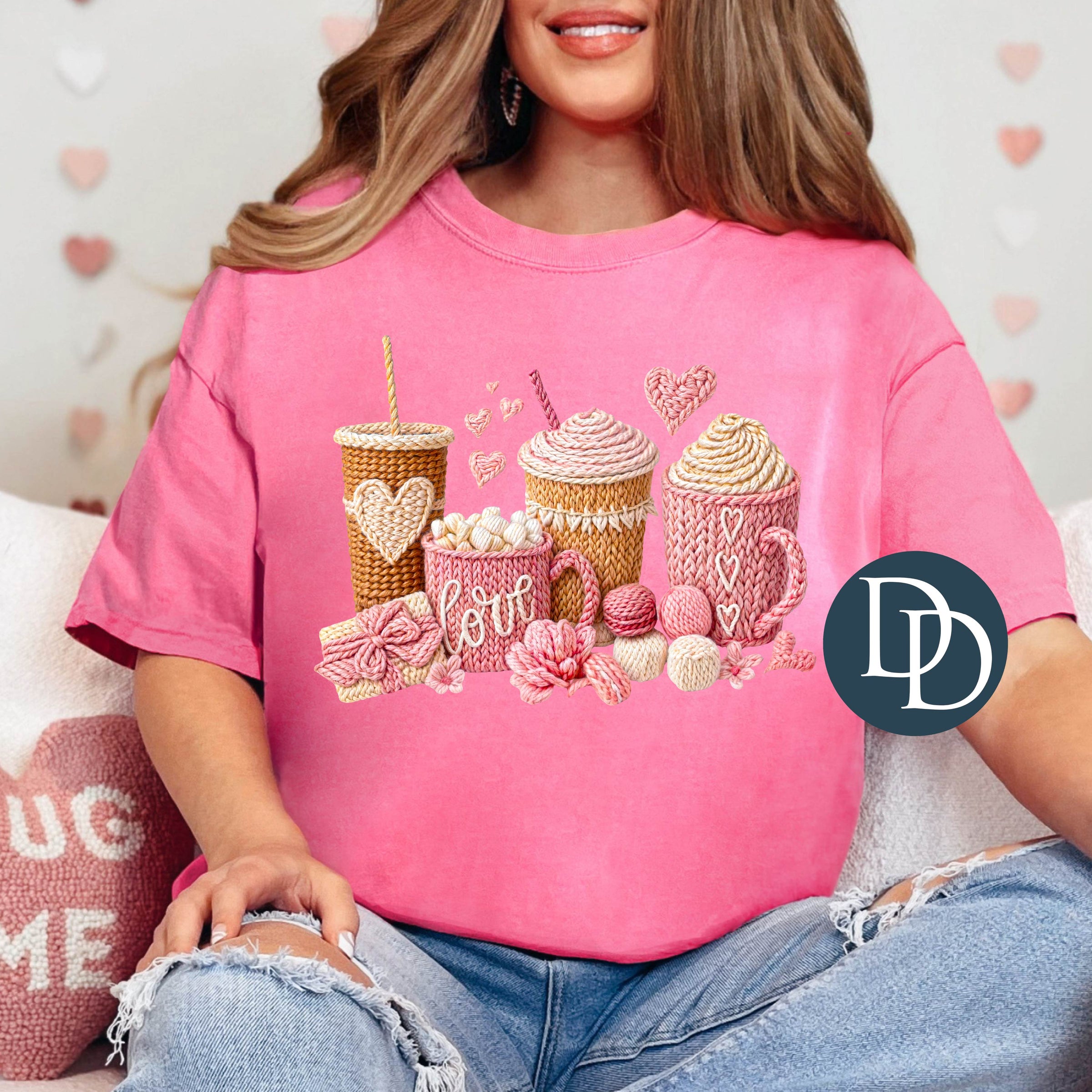 Pink Valentine Coffees Faux Yarn *DTF Transfer*