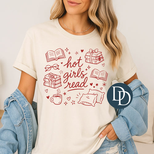 Hot Girls Read Doodles (Red Ink) *Screen Print Transfer*