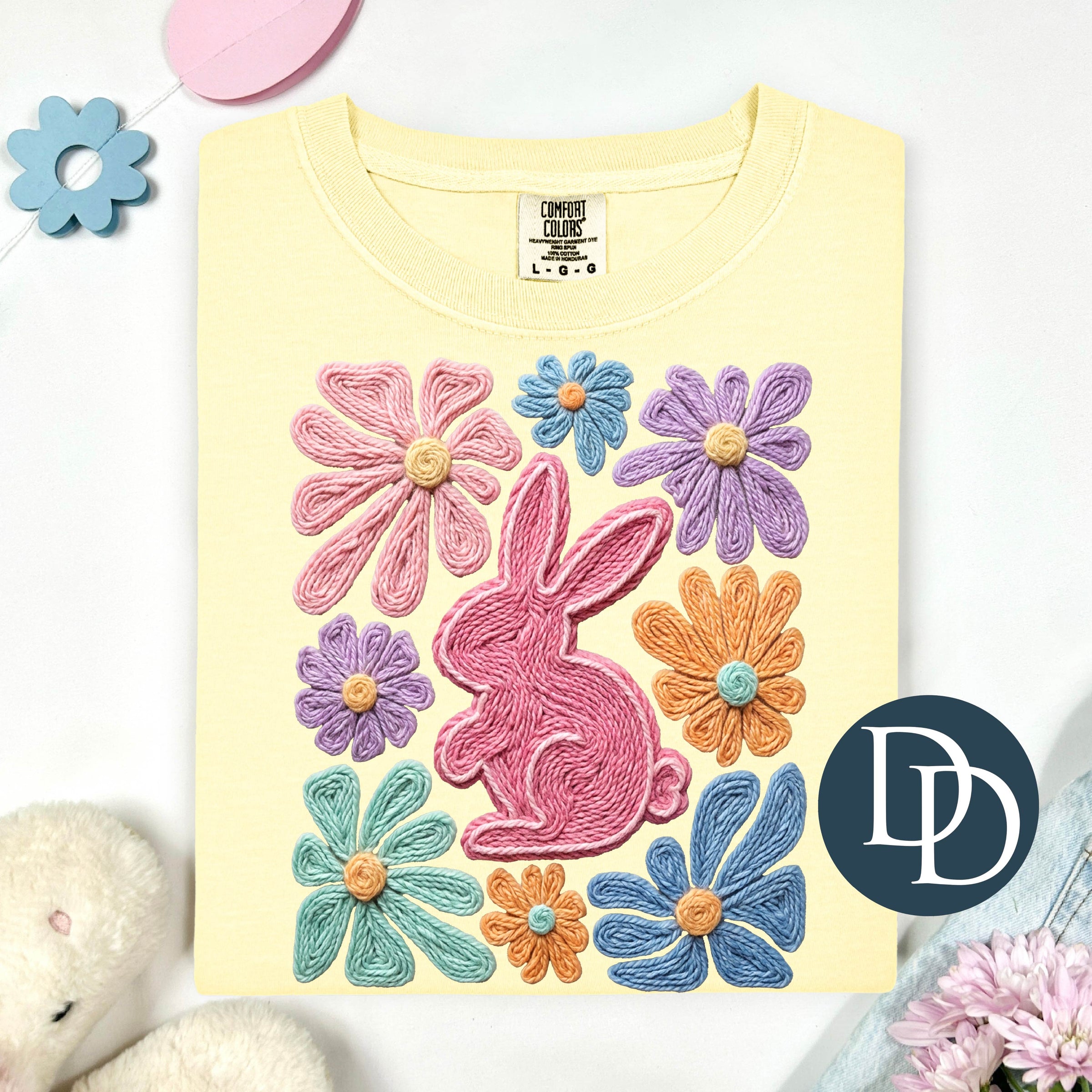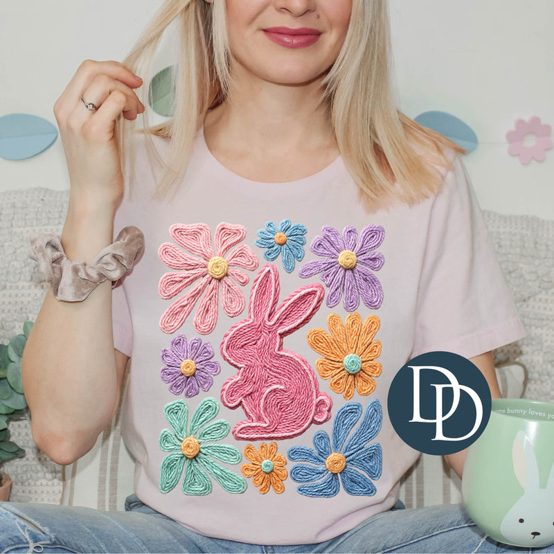 OVERSIZED Boho Easter Bunny Flowers Faux Yarn *DTF Transfer*