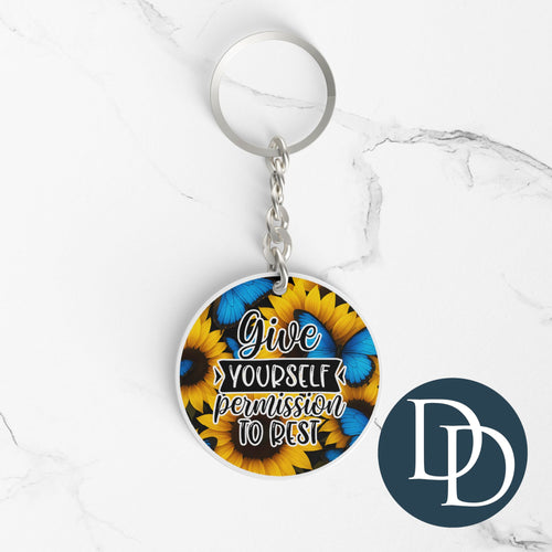 Give Yourself Permission To Rest *Round Keychain UV DTF Decal*