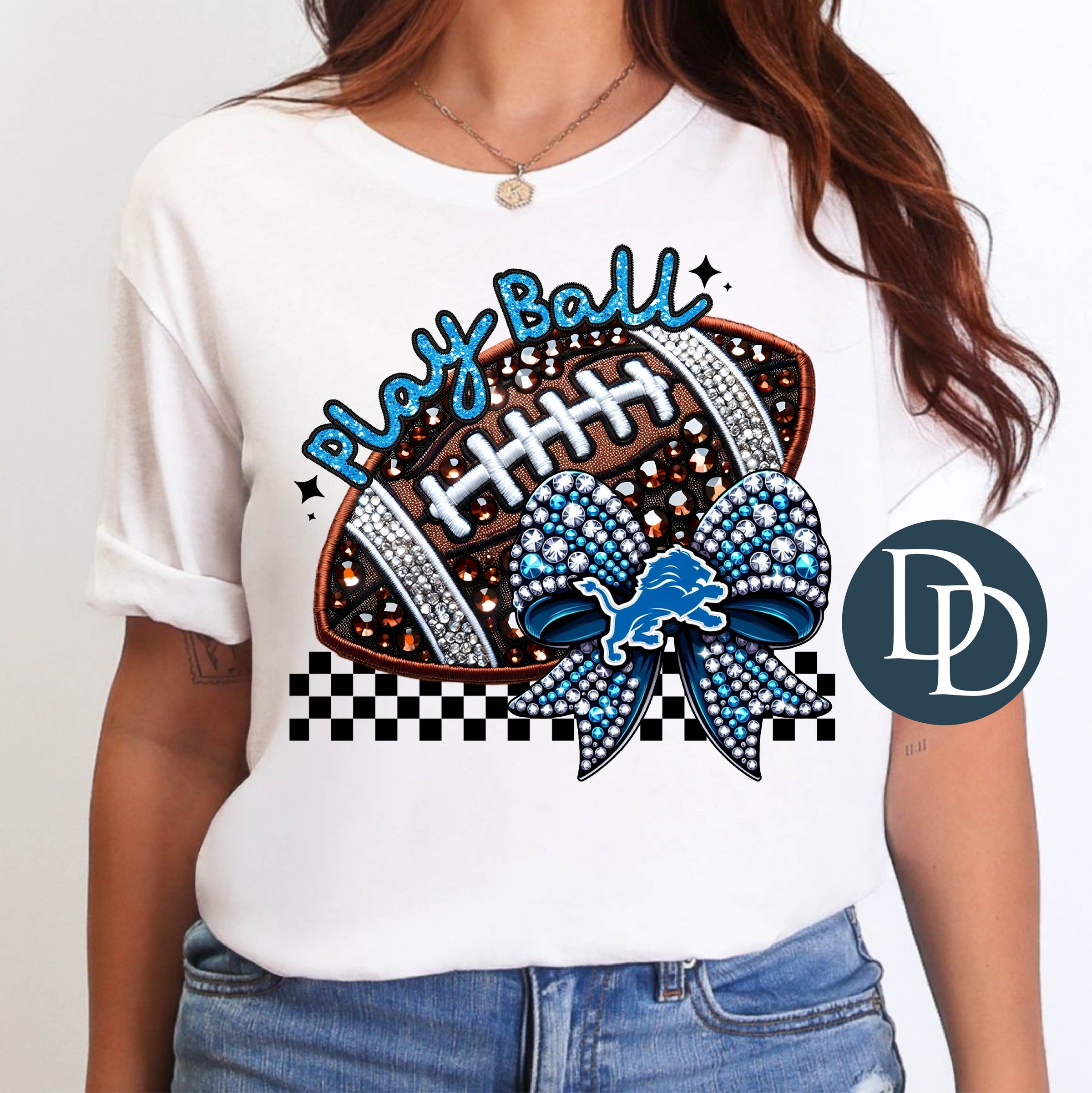 DL Faux Rhinestone Football Bow *DTF Transfer*