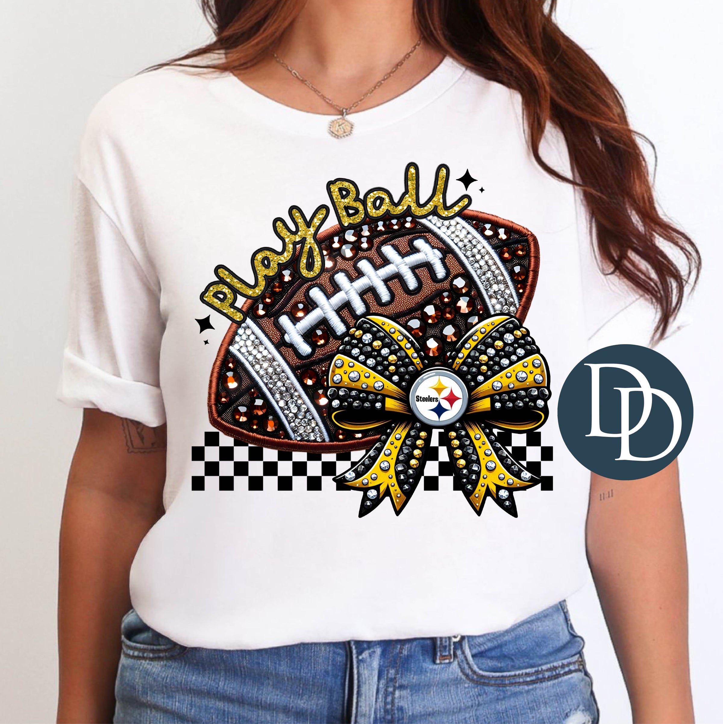 PS Faux Rhinestone Football Bow *DTF Transfer*