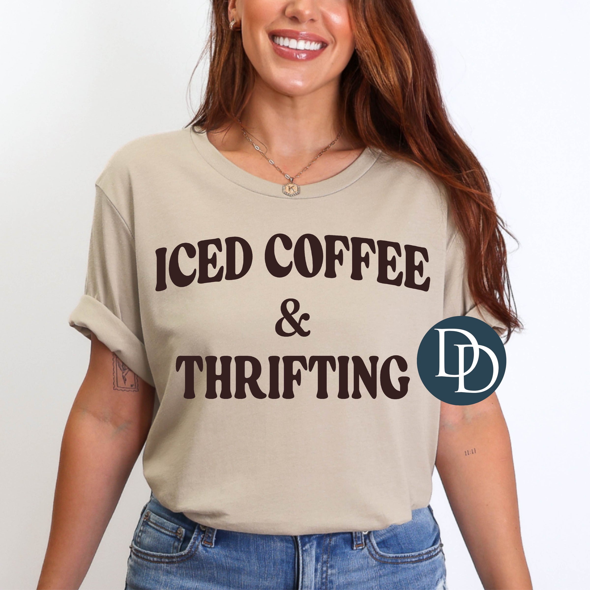 Iced Coffee And Thrifting (Dark Brown Ink) *Screen Print Transfer*
