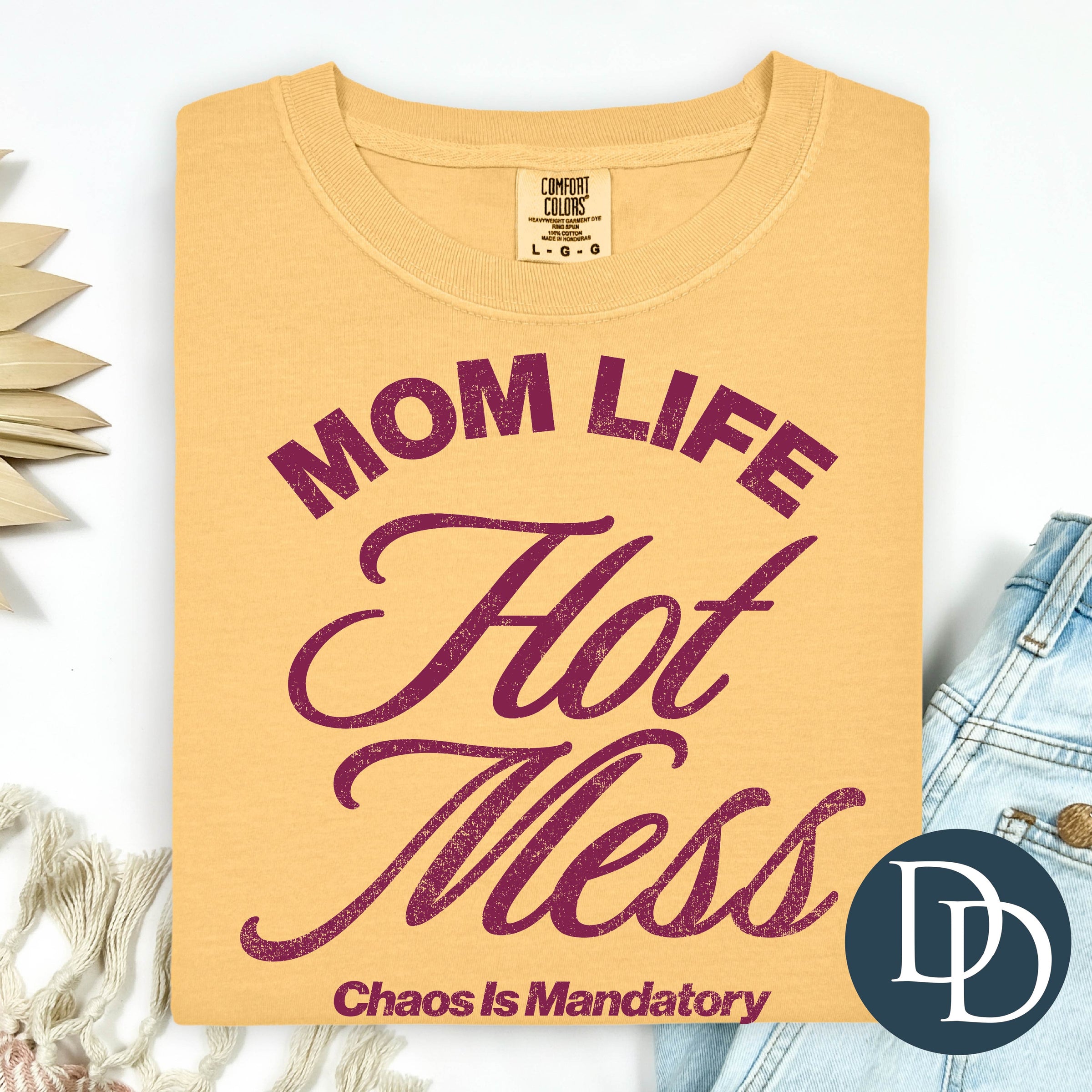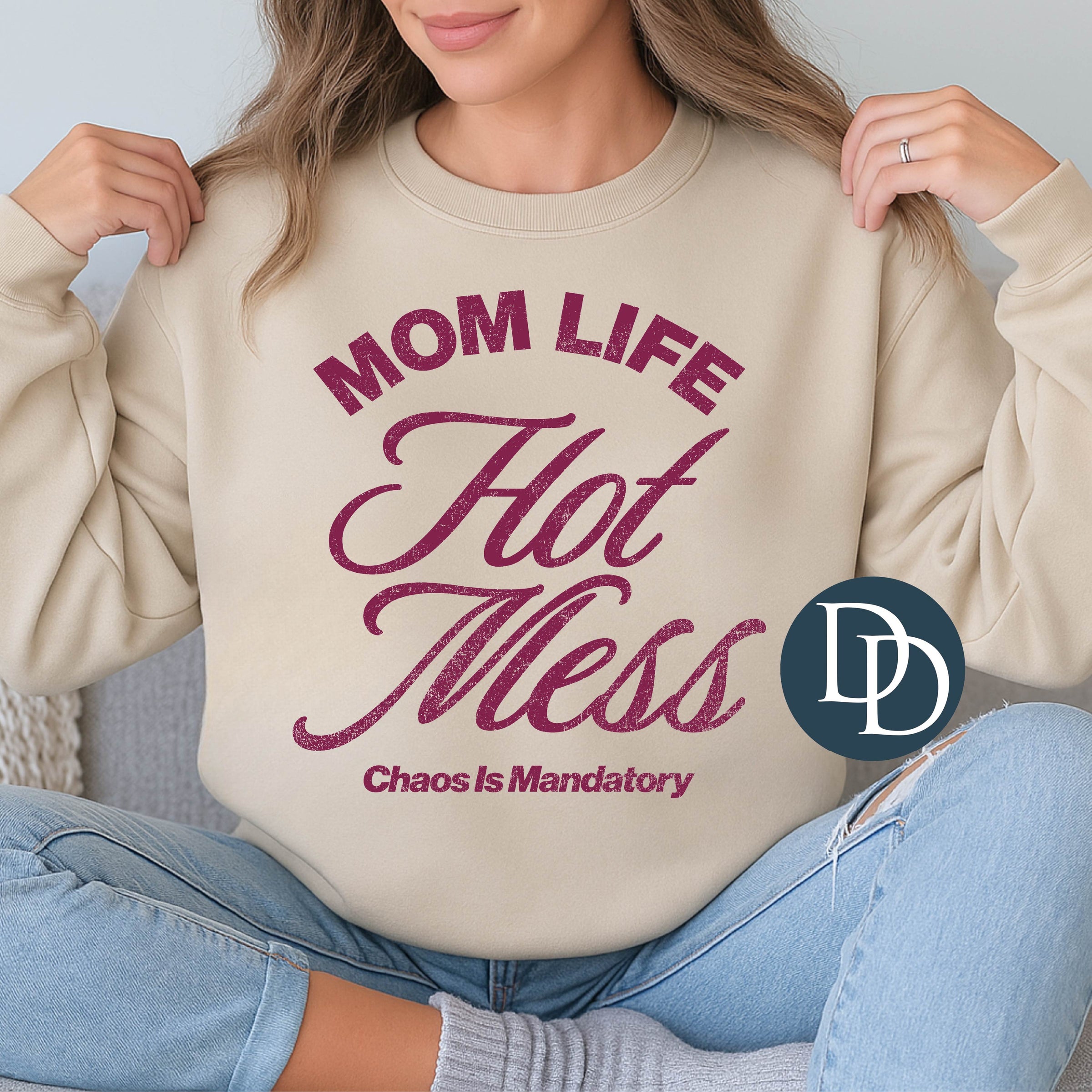 Mom Life Hot Mess Chaos Is Mandatory (Burgundy Ink) *Screen Print Transfer*