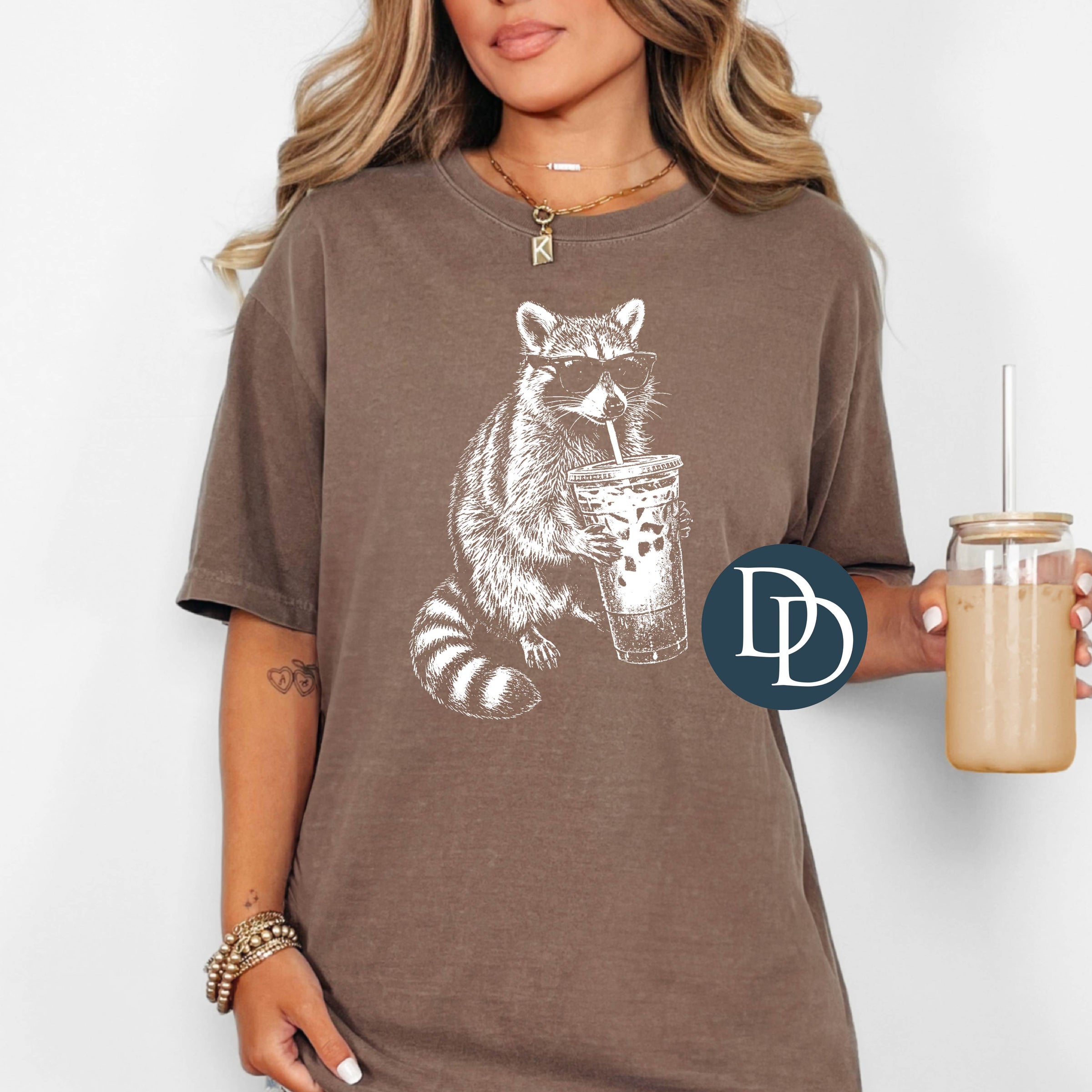 Raccoon Iced Coffee (White Ink) *Screen Print Transfer*