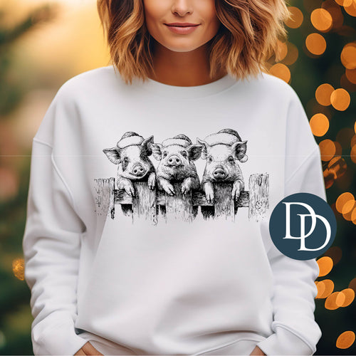 Christmas Pig Trio (Black Ink) *Screen Print Transfer*