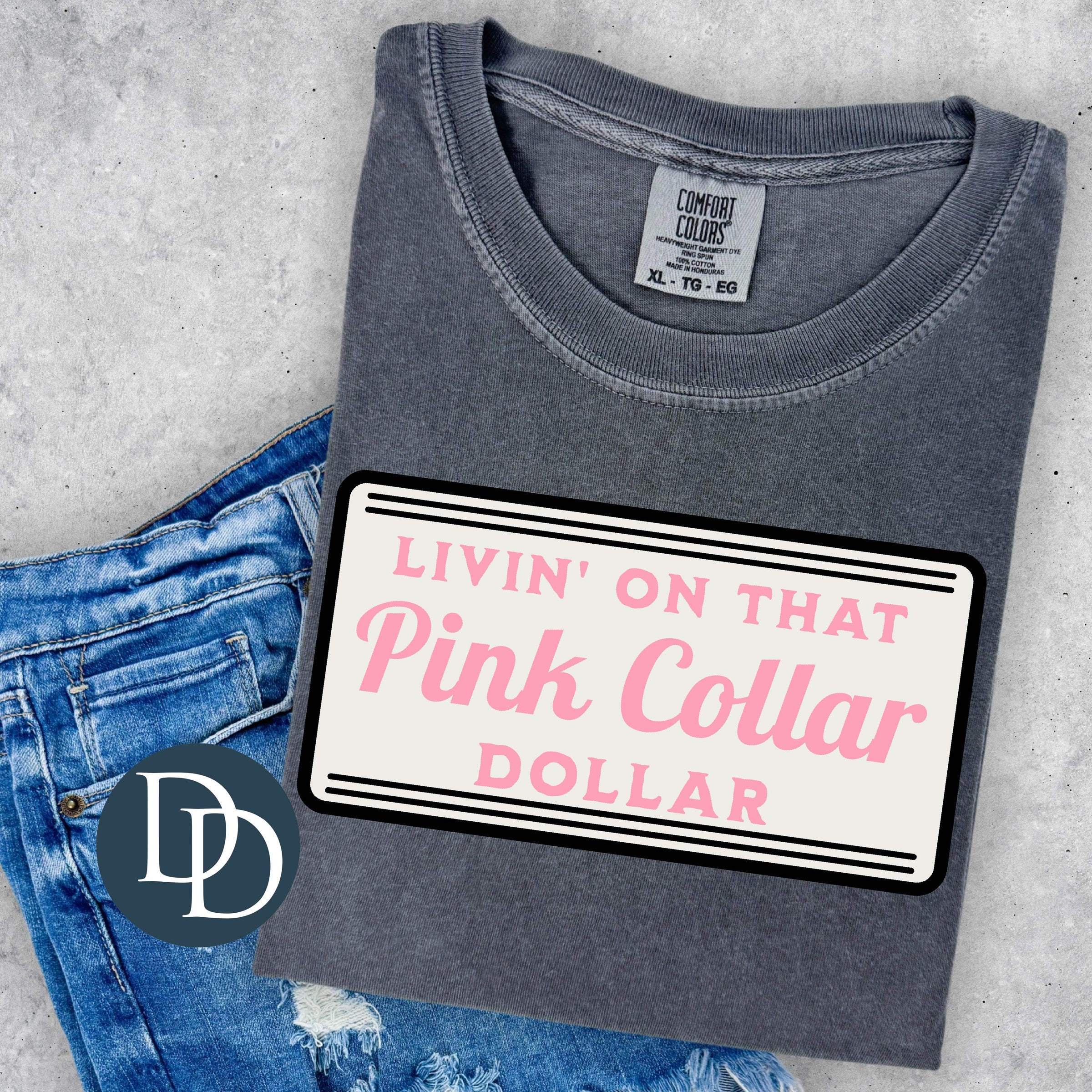 Livin on that PINK Collar Dollar with Hat Pocket *DTF Transfer*