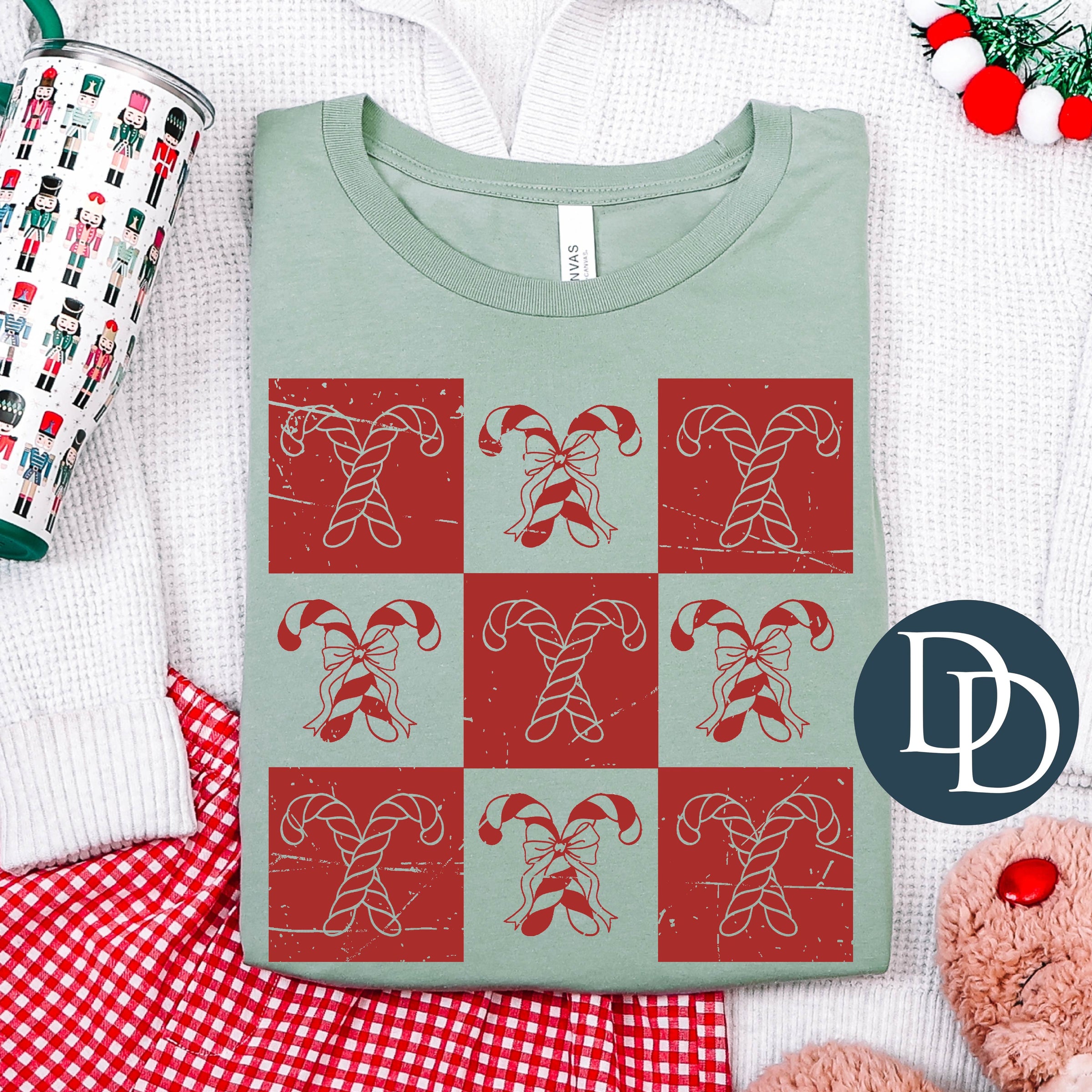 Checkered Candy Canes (Red Ink) *Screen Print Transfer*