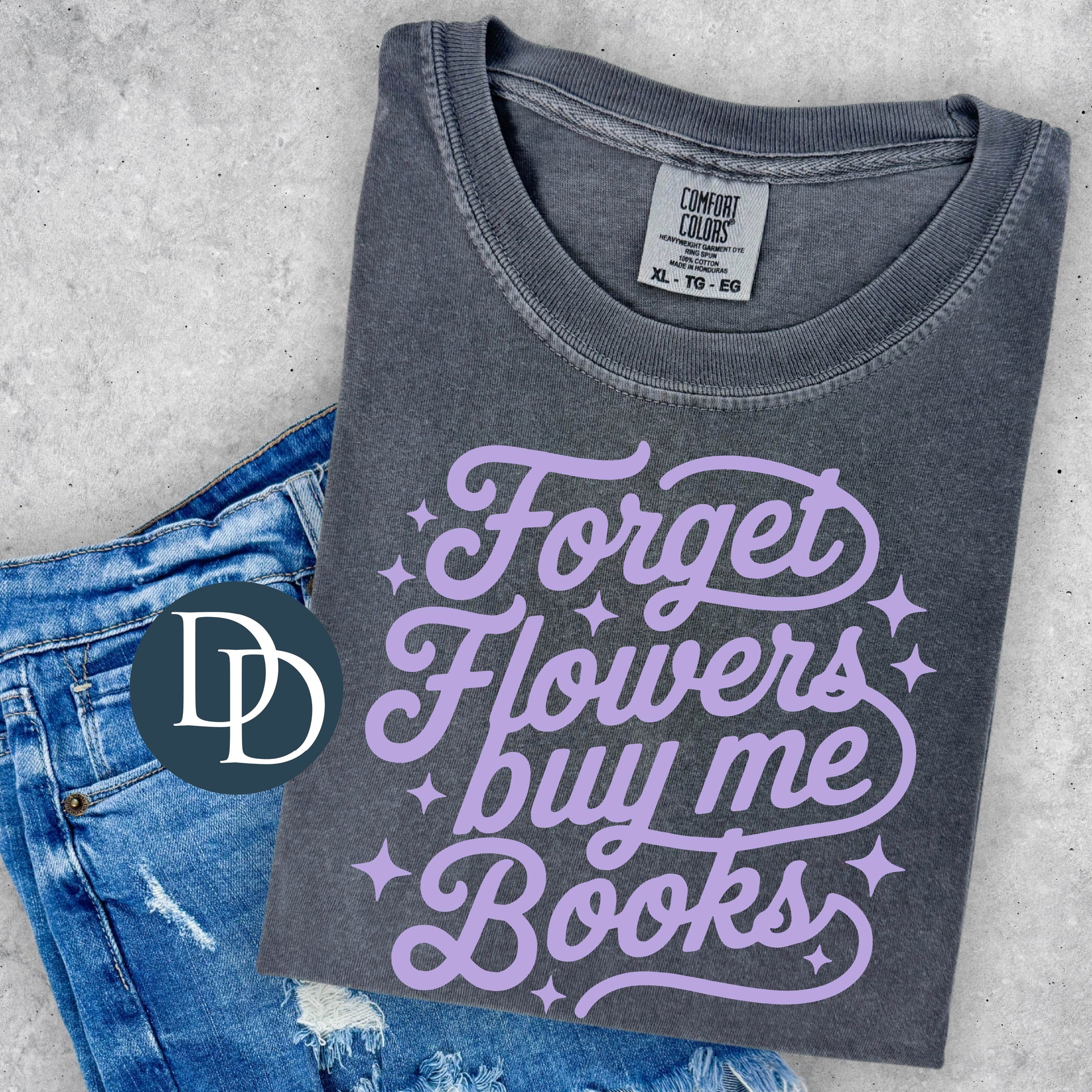 Forget Flowers Buy Me Books (Lavender Ink) *Screen Print Transfer*