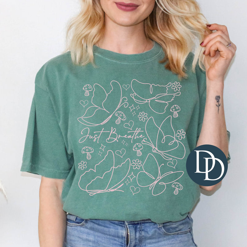 Just Breathe Butterfly Doodles (Baby Pink Ink) *Screen Print Transfer*