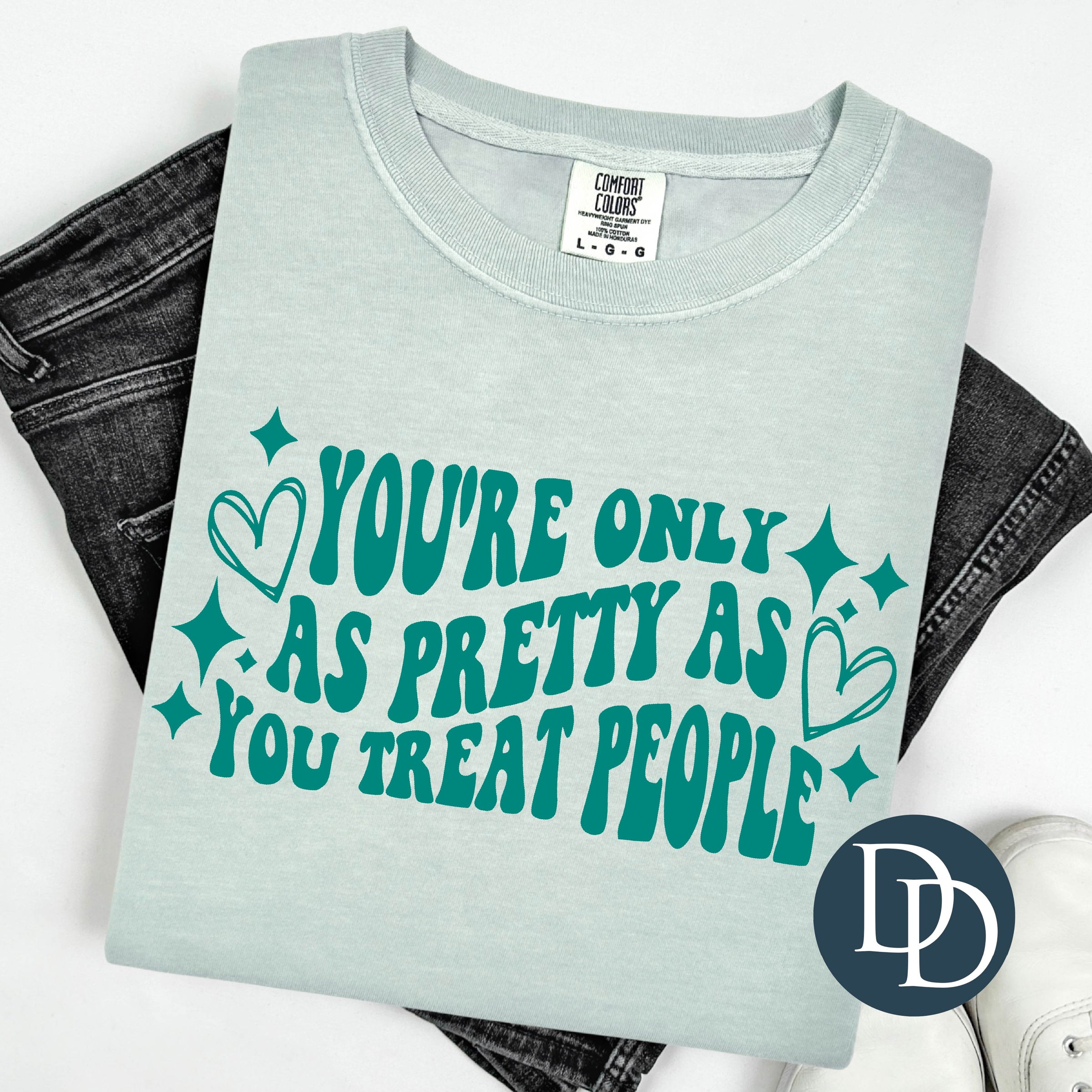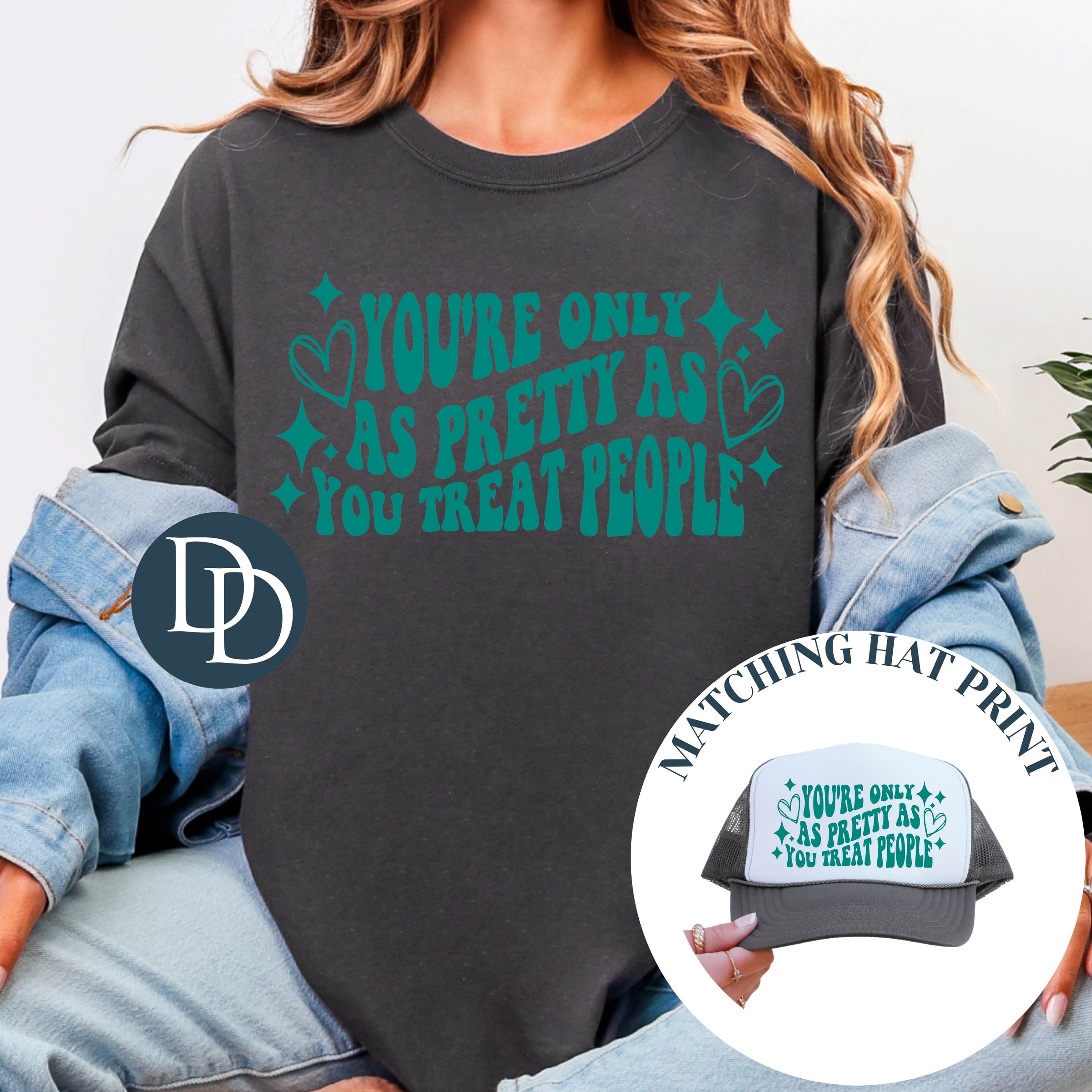 Pretty as You Treat People Hearts with Hat Design (Teal Ink) *Screen Print Transfer*
