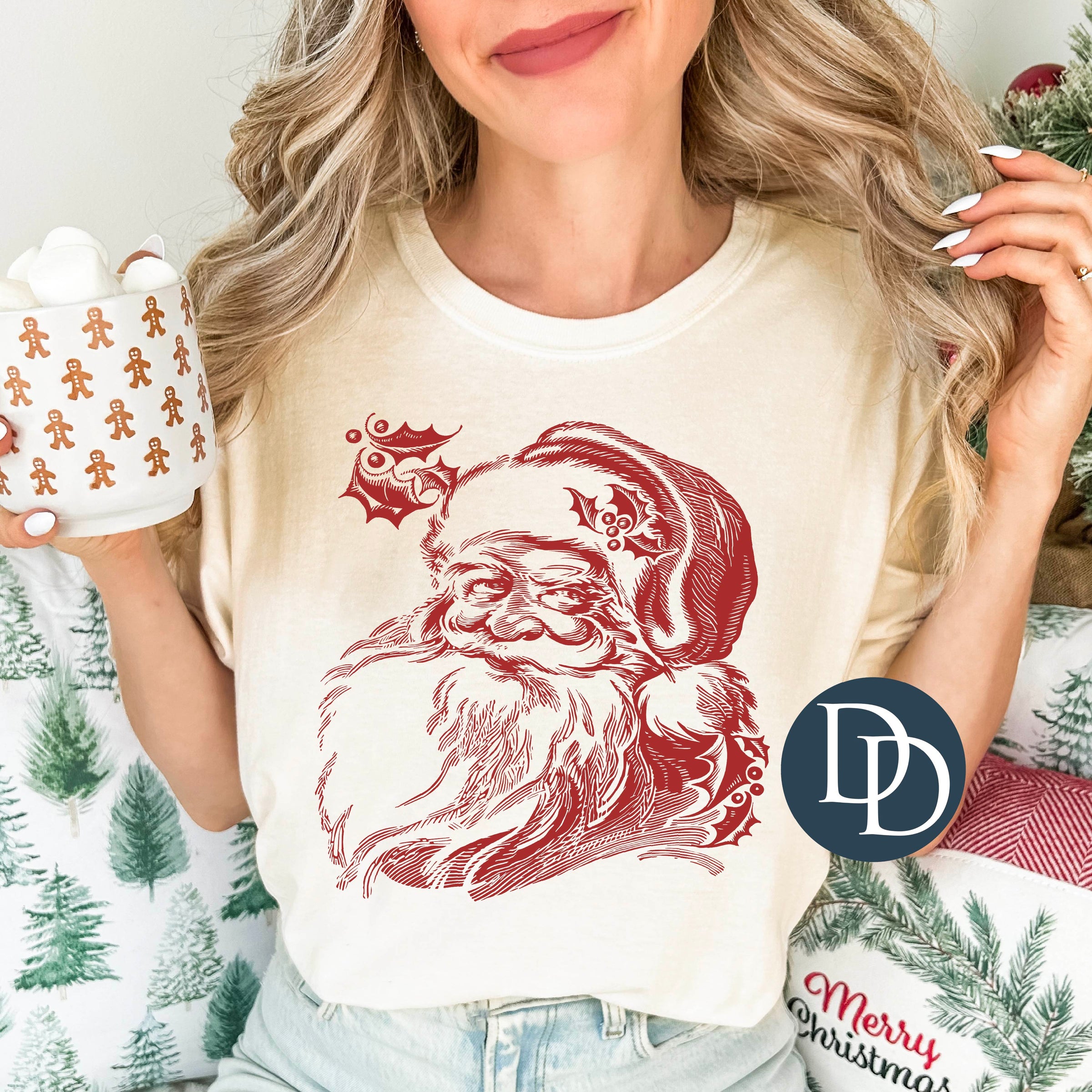 Traditional Santa Head And Holly (Red Ink) *Screen Print Transfer*
