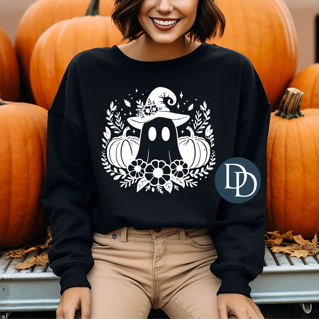 Witch Hat Ghost Florals (White Ink) *Screen Print Transfer*