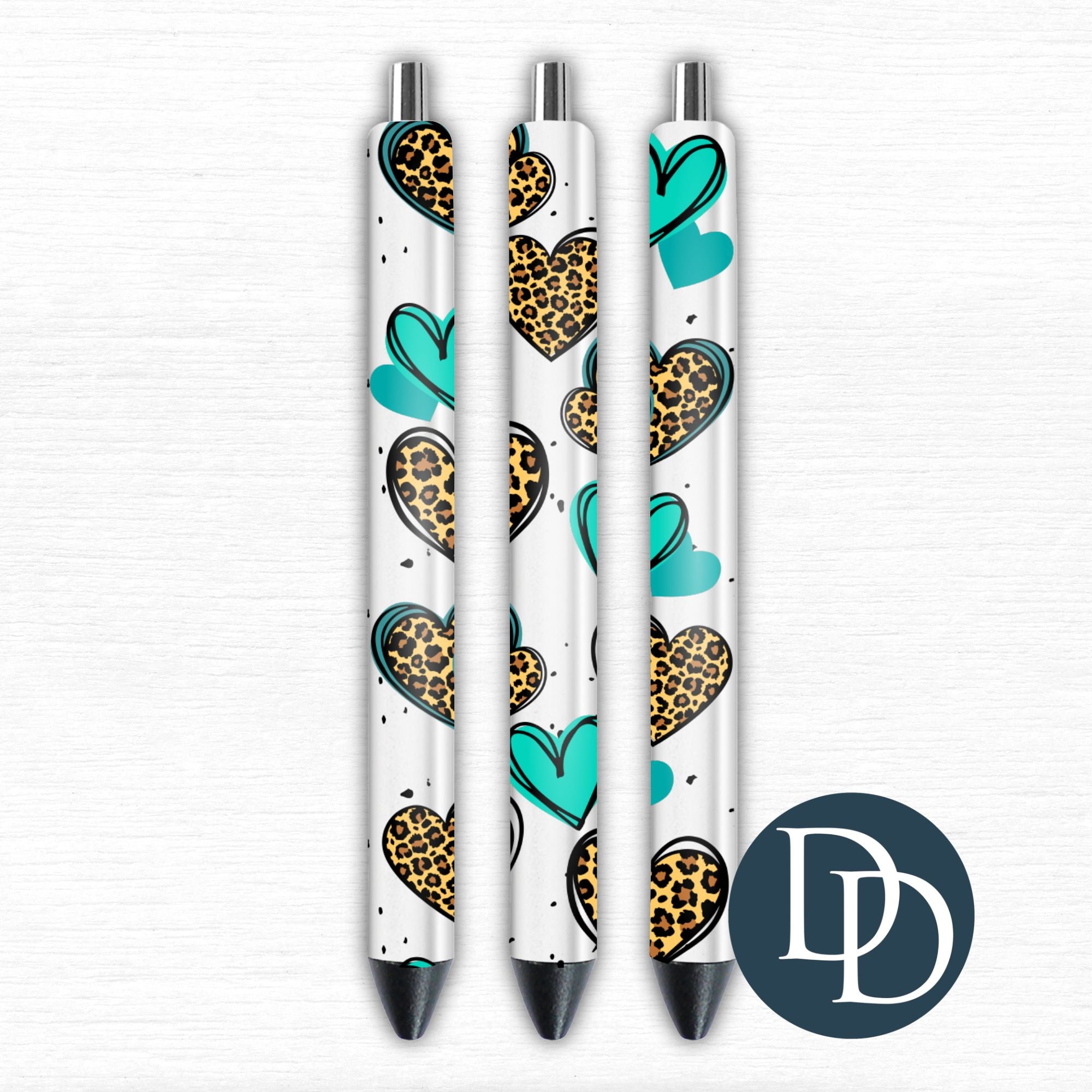Teal Cheetah Hearts - SET OF 2 *UV DTF Pen Wraps*