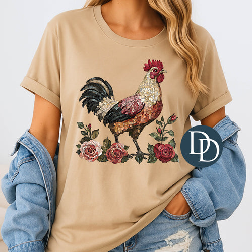 Rooster Floral Stained Glass *DTF Transfer*