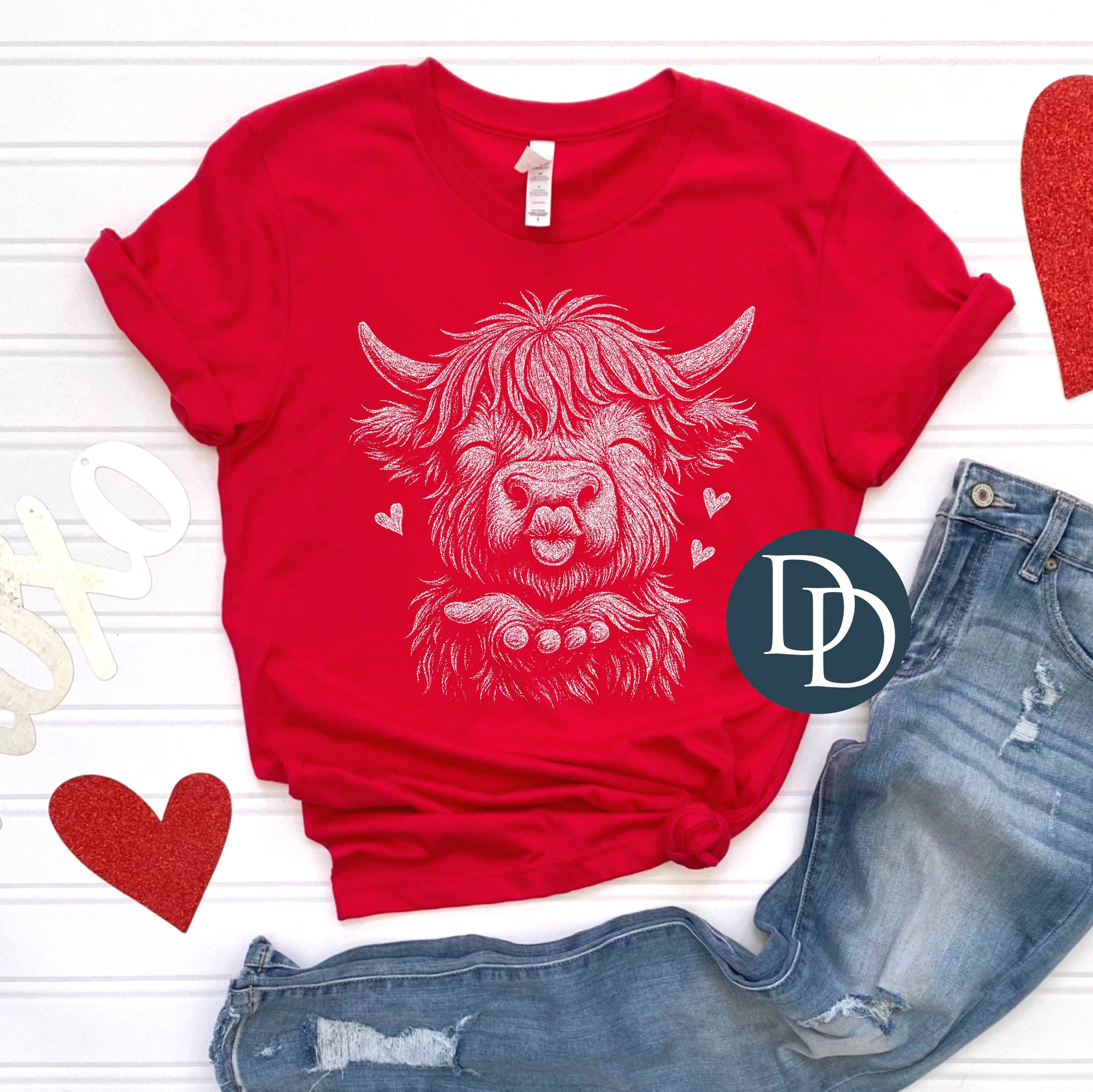 Kissy Face Highland Cow (White Ink) *Screen Print Transfer*