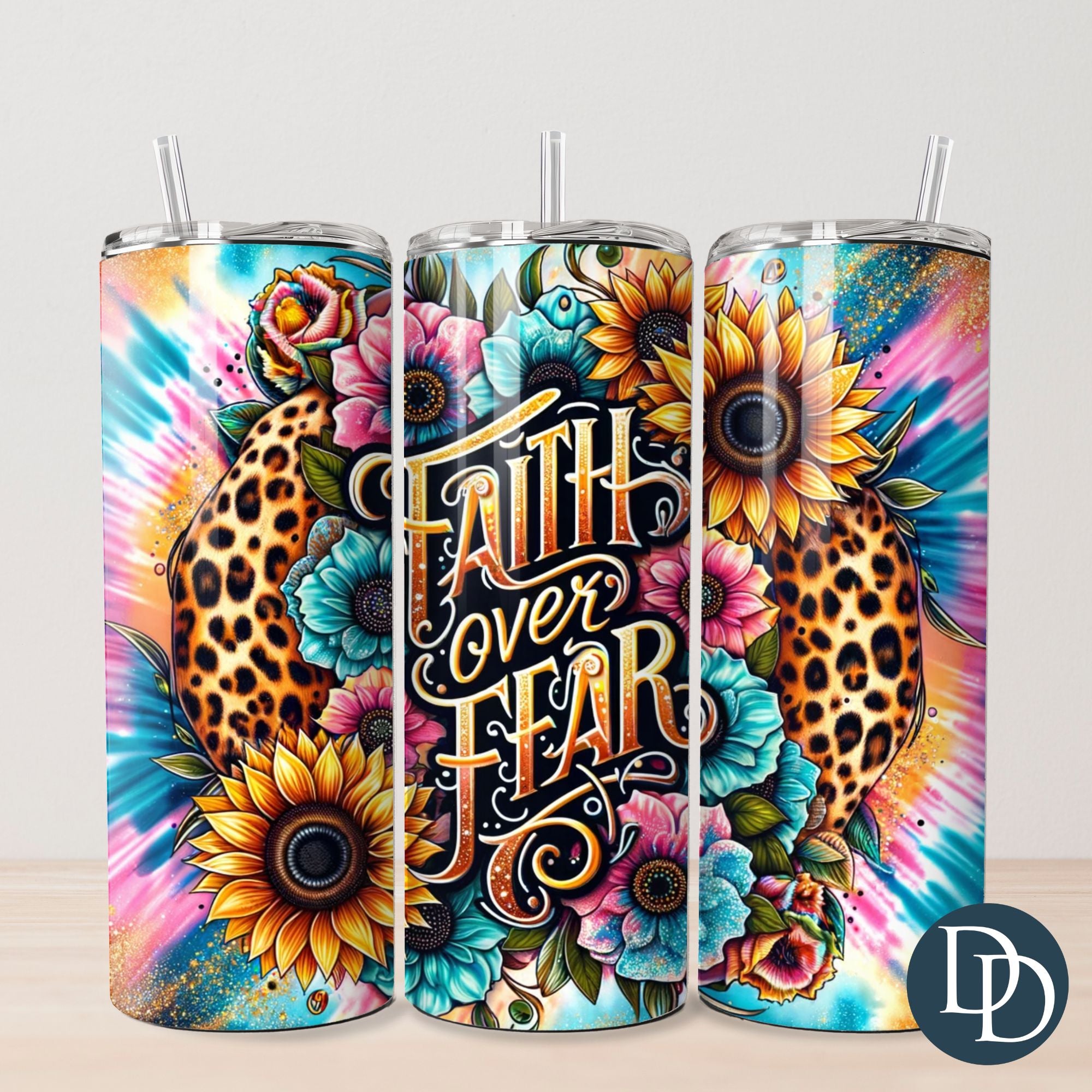 Tie Dye Faith Over Fear Tumbler Print *Sublimation Print Transfer*