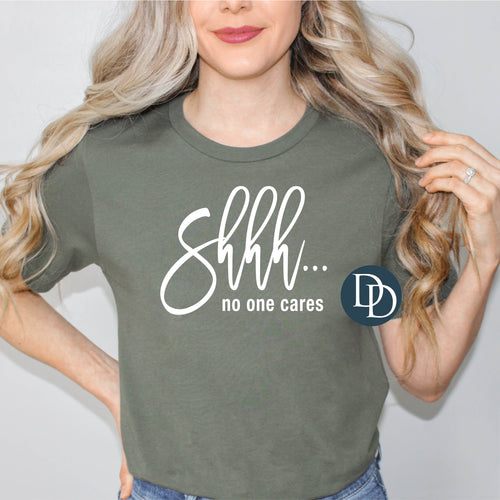 Shhhh No One Cares (White Ink) *Screen Print Transfer*