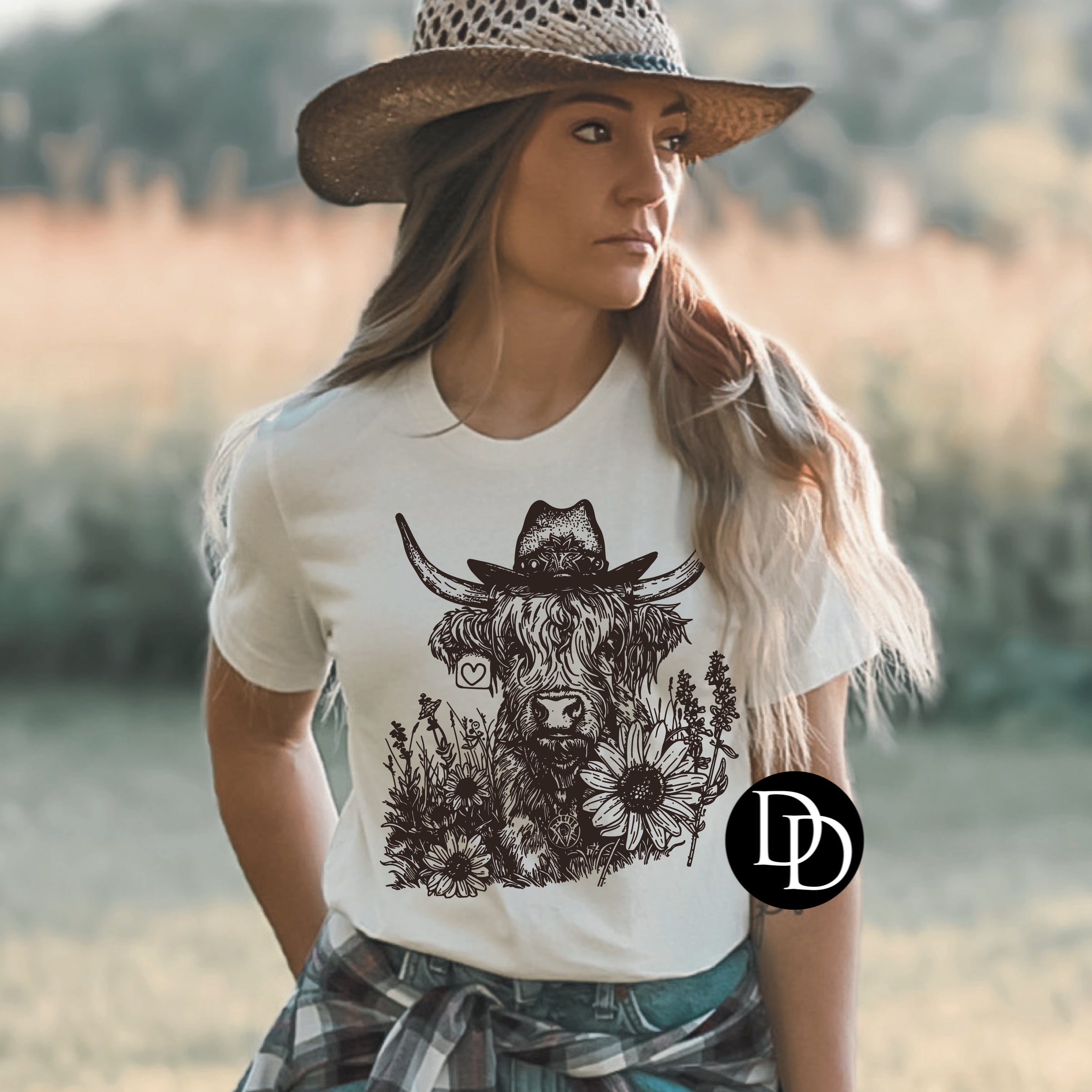 Cowboy Highland Flowers (Brown Ink) *Screen Print Transfer*