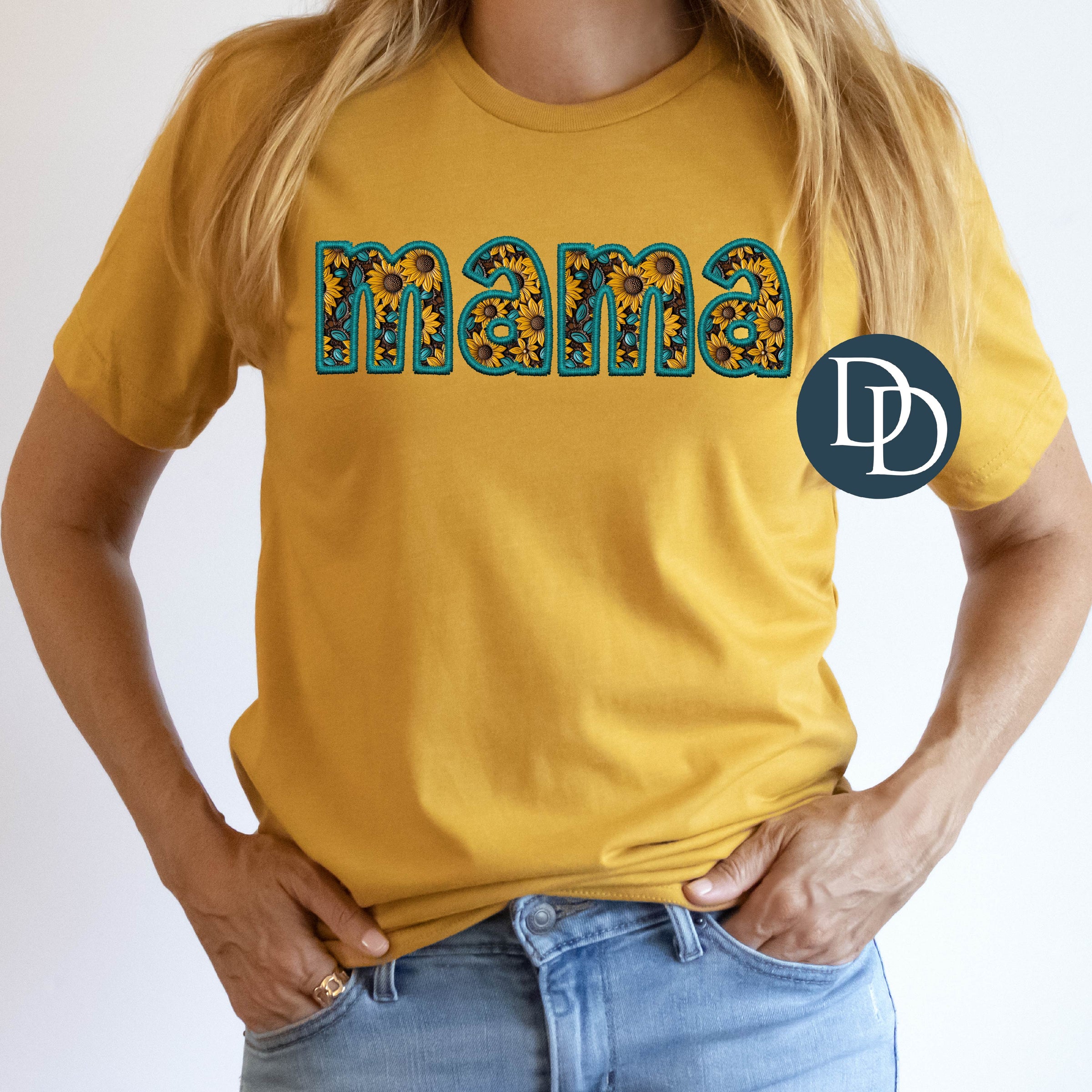 MAMA Sunflower Teal Faux Embroidery *DTF Transfer*
