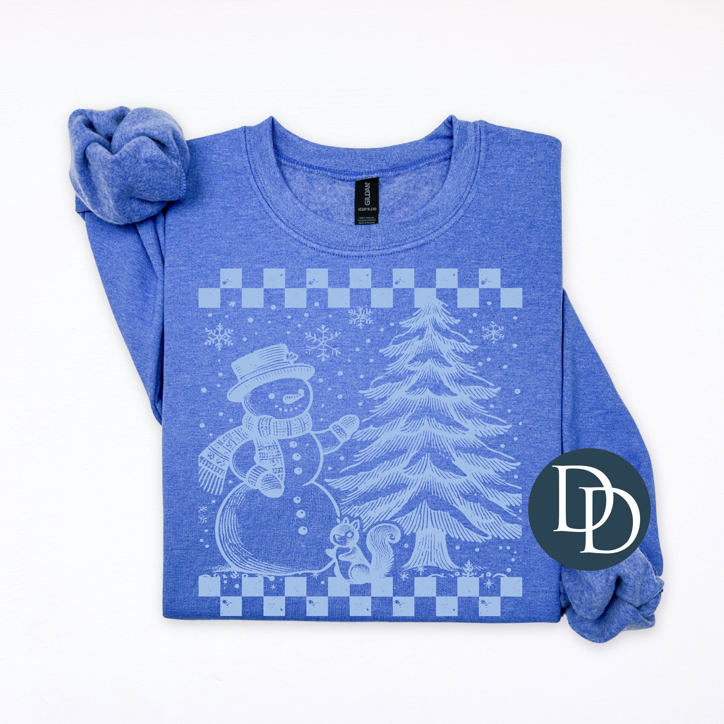 Checkered Snowman Winter Tree (Light Blue Ink) *Screen Print Transfer*