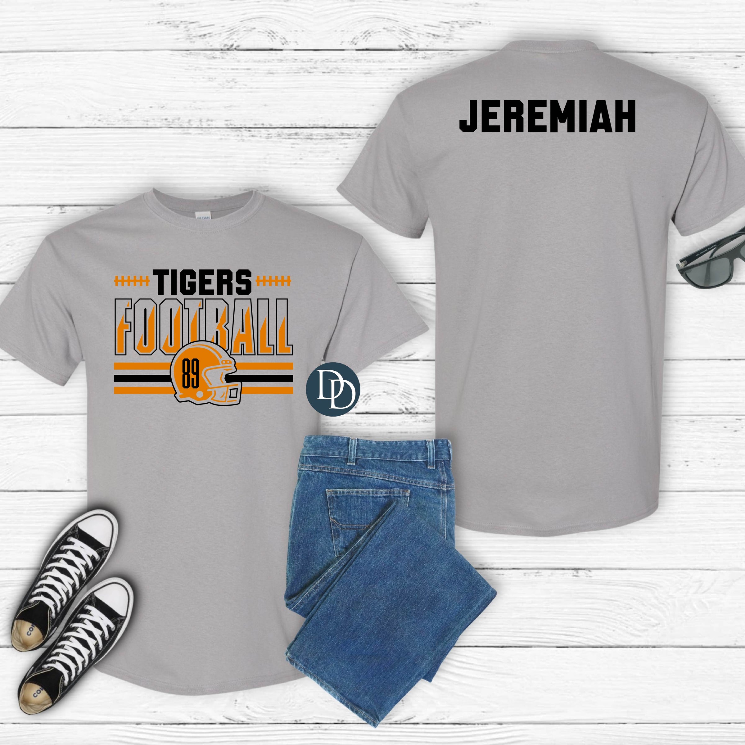 *** Once your order has been placed, please email the support desk at support@dapperdesigns.store with your order number, the mascot name, TWO colors, and the name and number you are needing.