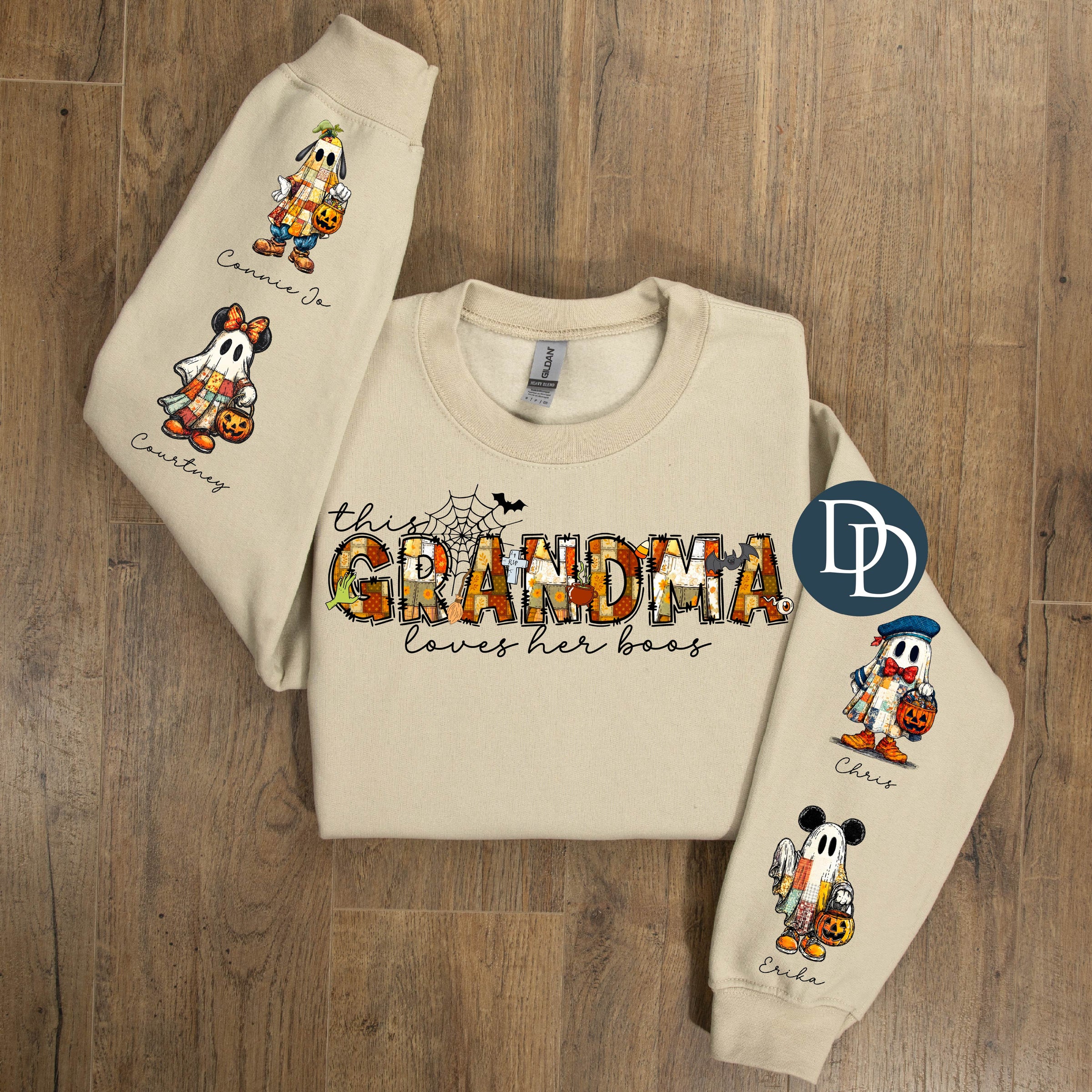 The main name and the names below the ghosts are customizable, everything else can NOT be changed. The pricing is for up to 4 ghost sleeve designs; each additional sleeve design will be additional $1.50 each.