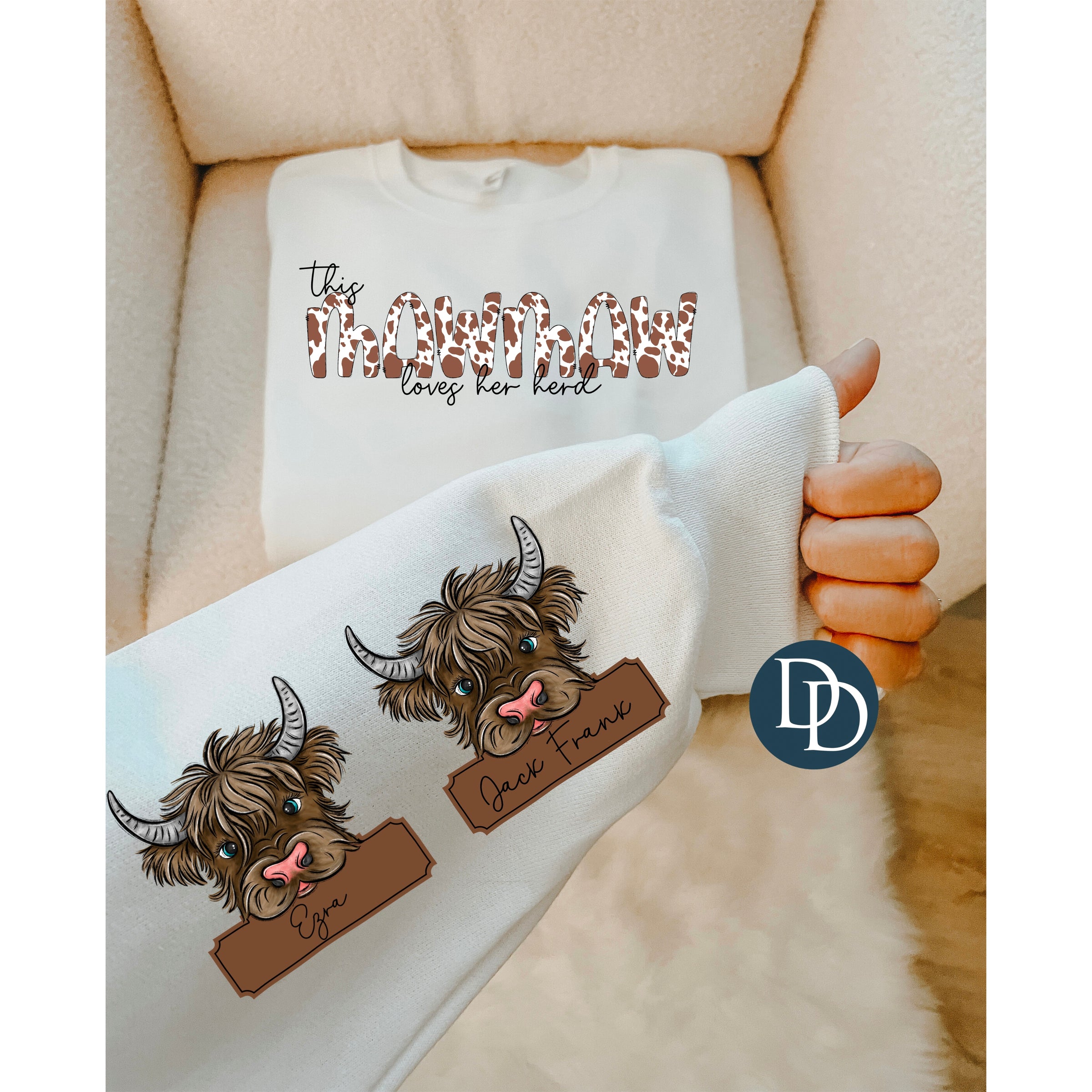 The main name and the names on the highland cows are customizable, everything else can NOT be changed. The pricing is for up to 4 highland cow sleeve designs; each additional sleeve design will be additional $1.50 each.