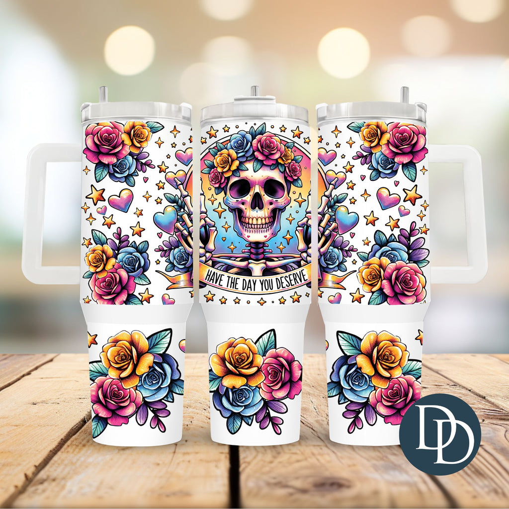 Skelly Day You Deserve Flower Hearts *UV DTF 40oz Tumbler Wrap*