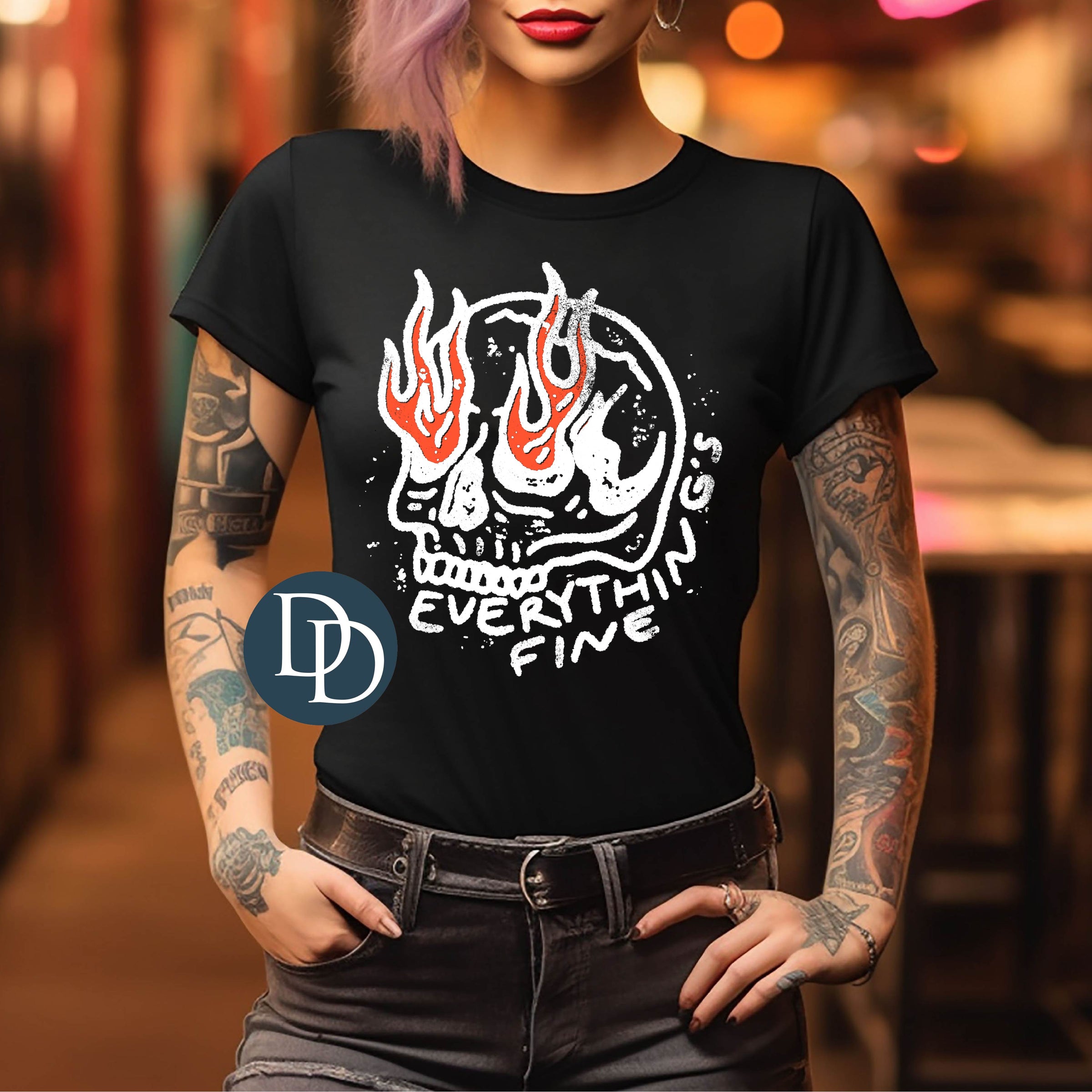 Everything is Fine Burning Skull White Ink *DTF Transfer*