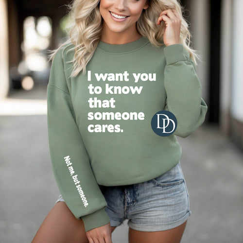 I Want You To Know That Someone Cares With Sleeve Accent (White Ink) *Screen Print Transfer*