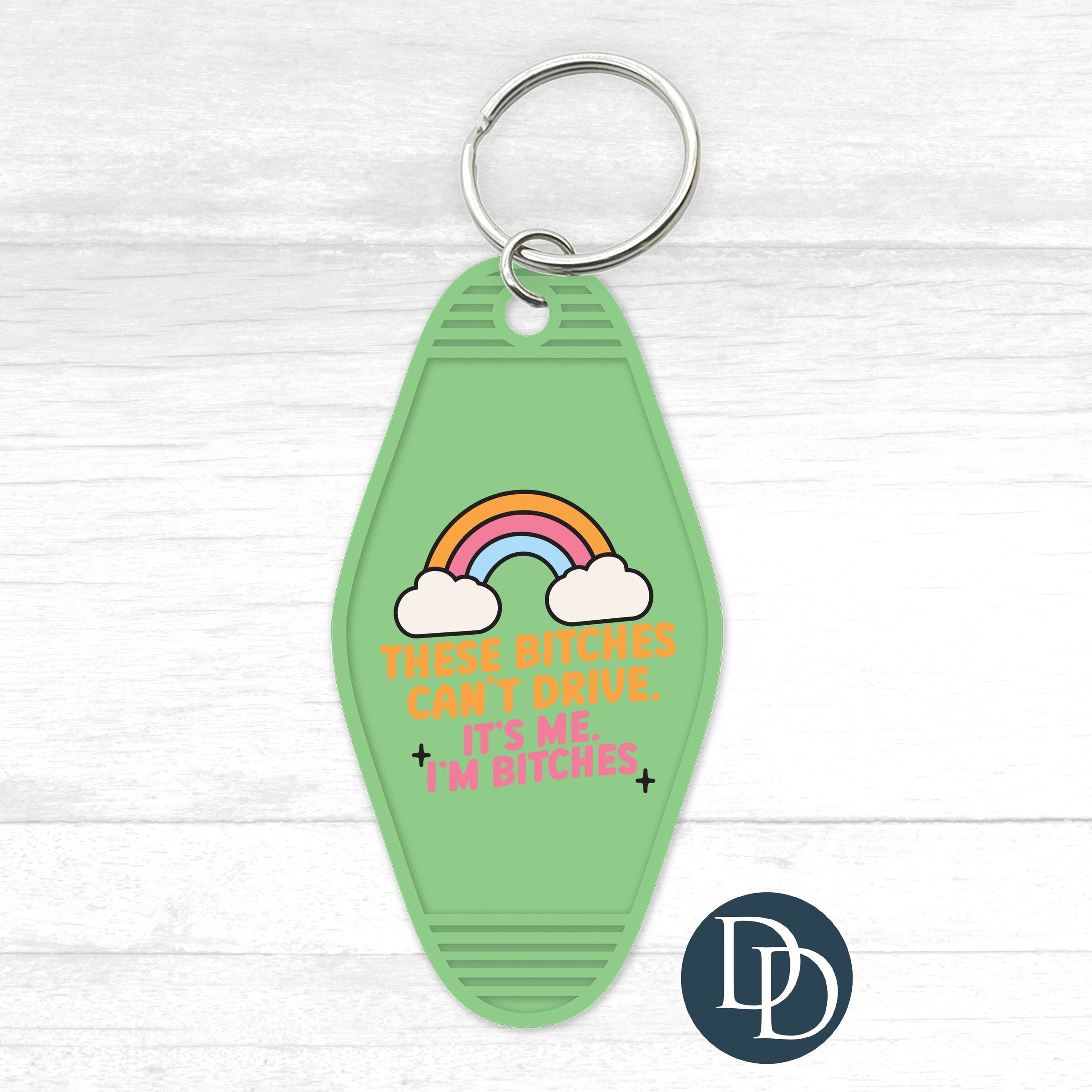 These B*tches Can't Drive Motel Keychain UV DTF Decal