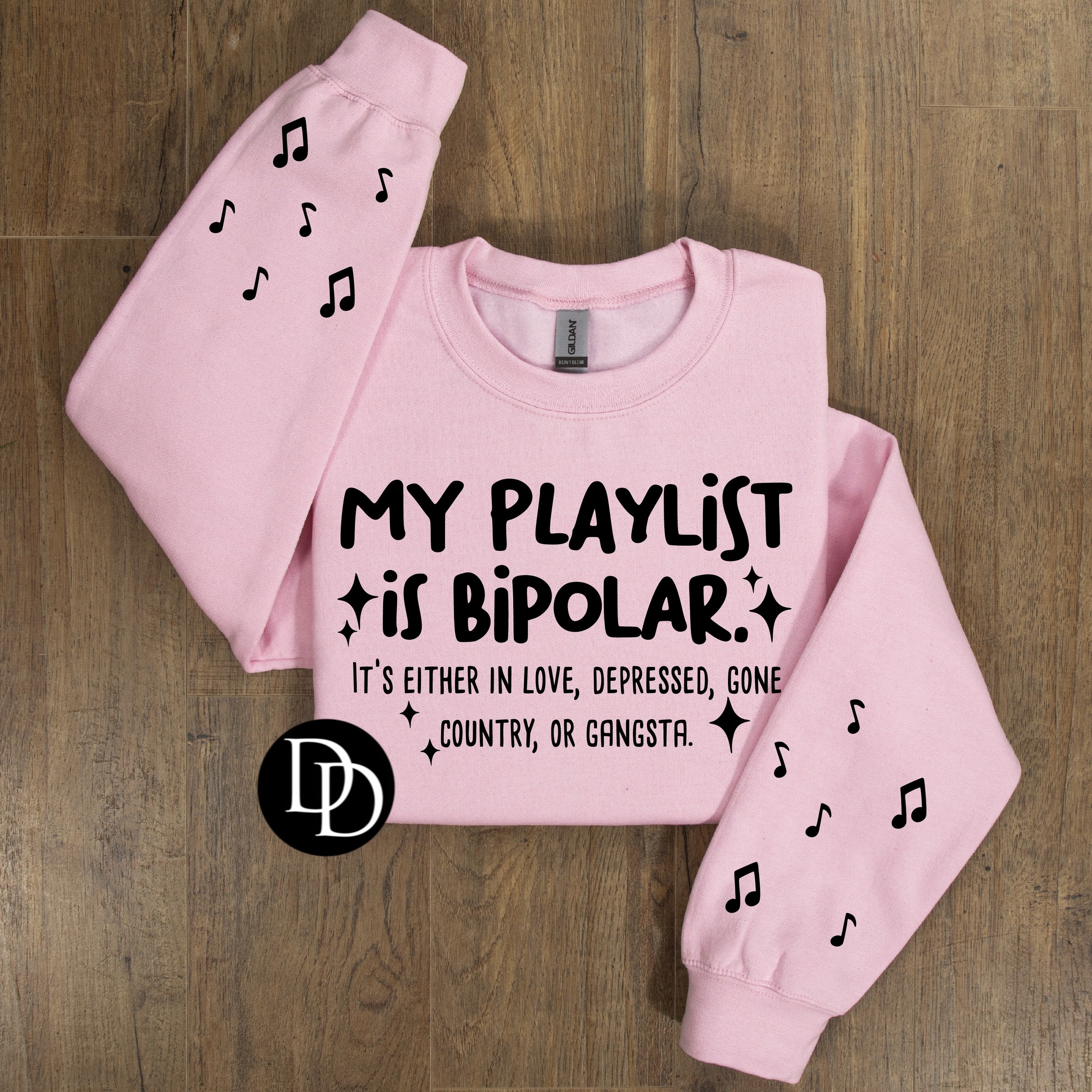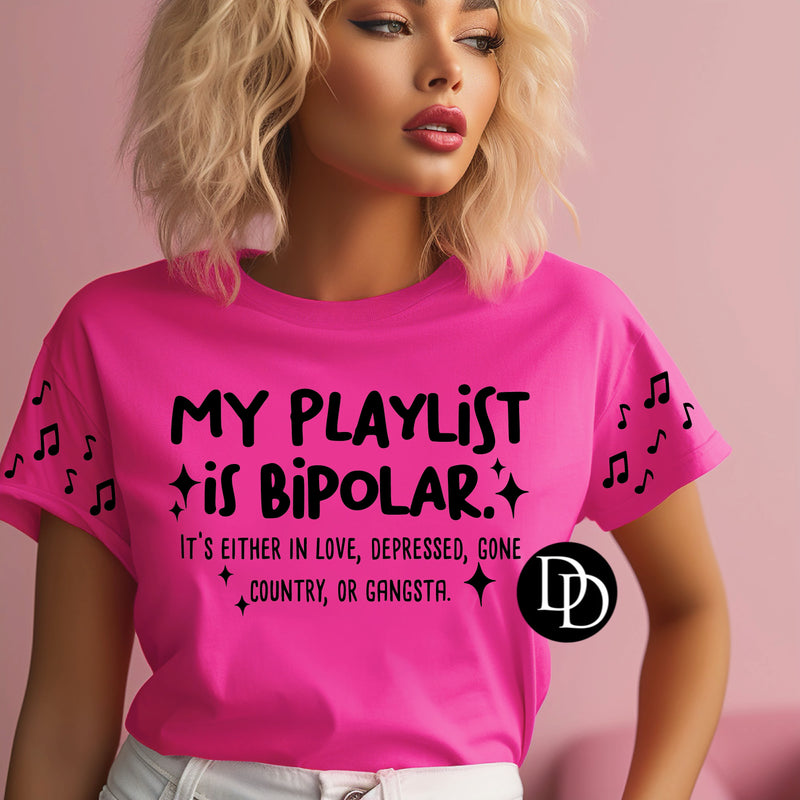 My Playlist Is Bipolar With Sleeve Accents (Black Ink) - NOT RESTOCKING - *Screen Print Transfer*