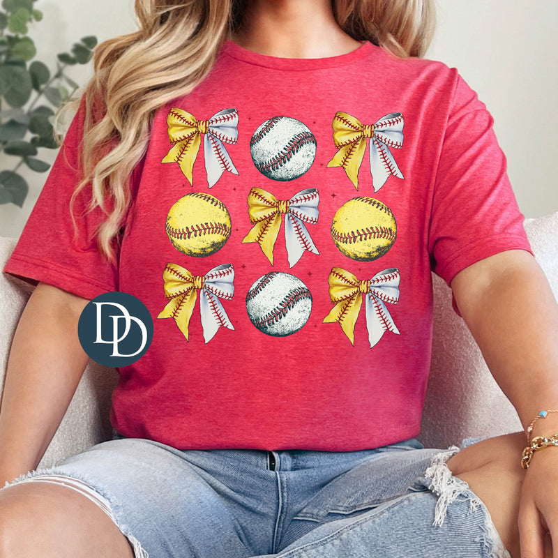 Vintage Softball Baseball Bows Balls *DTF Transfer*
