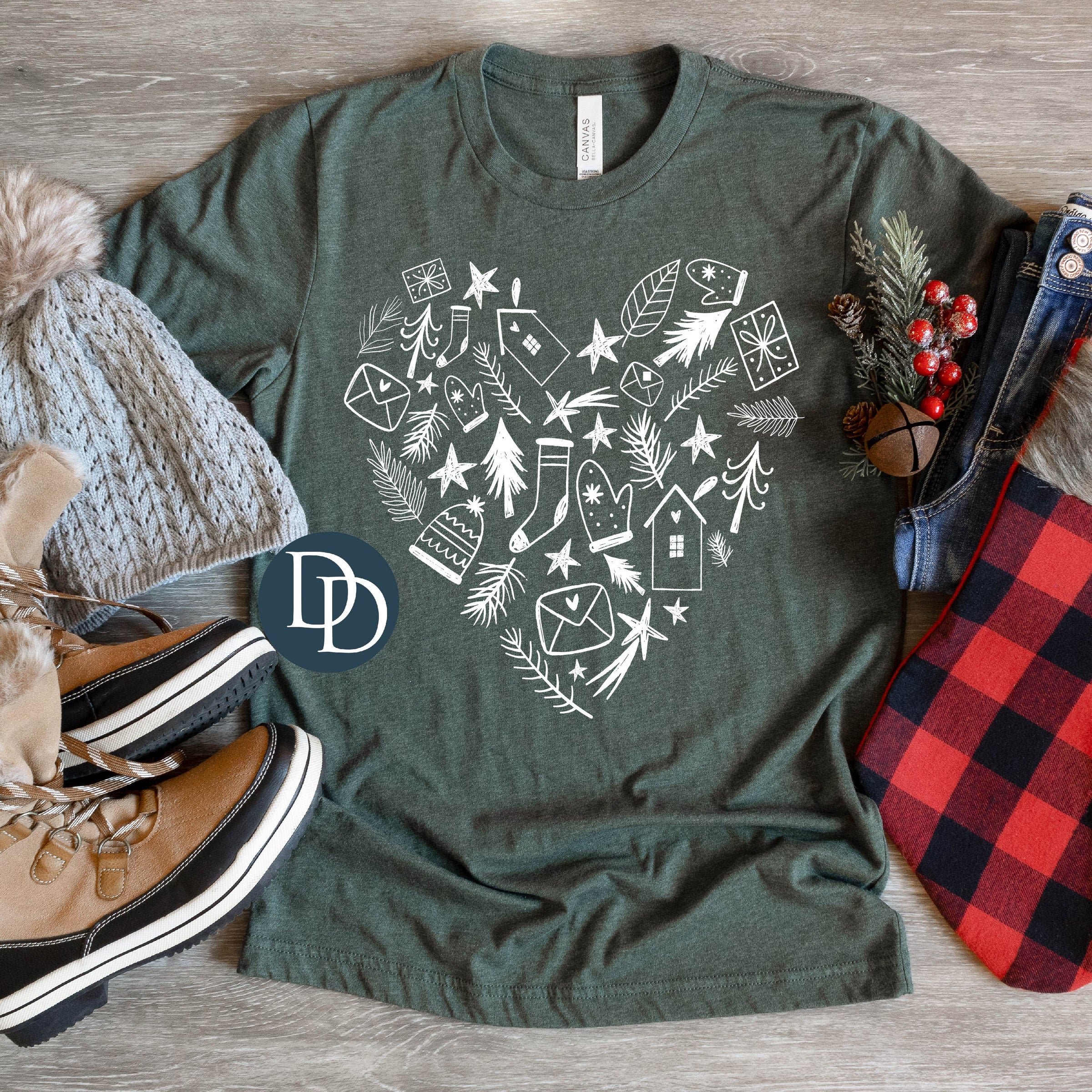 Whimsy Christmas Heart (White Ink) *Screen Print Transfer*